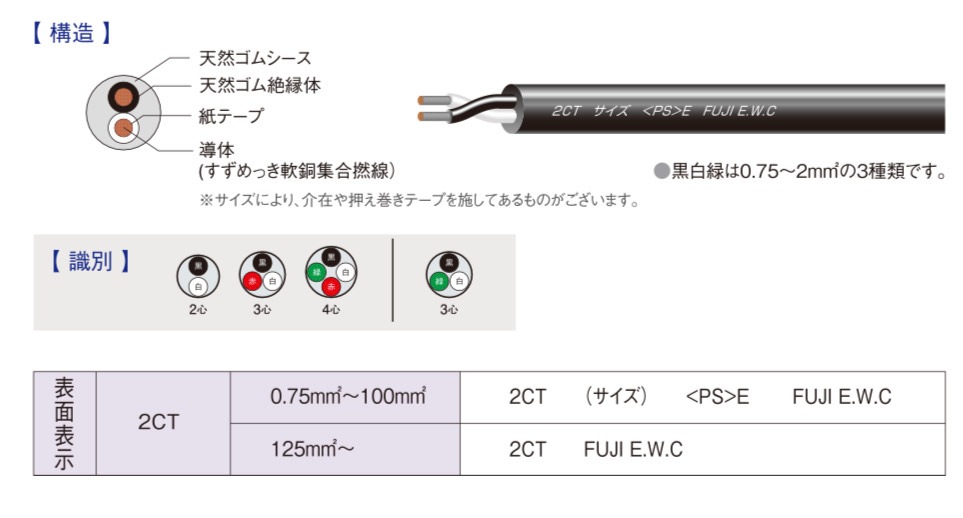 この商品は 富士電線工業 2CT 600V ゴムキャブタイヤケーブル です。